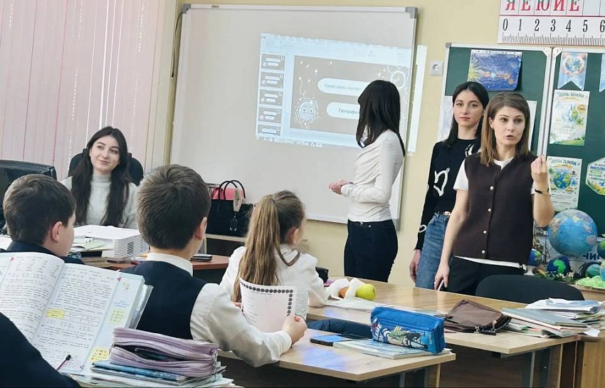 в 4 «А» классе нашей школы , рамках преемственности «Школа-Университет»благодаря классному руководителю Кучиевой Ф.А. на урок в гости были приглашены студенты 3 курса СОГУ ,(факультет географии), которые стали нашими проводниками в увлекательный мир природы.